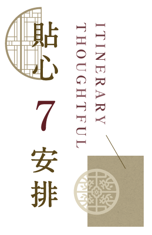 - 團體全程提供中國知名品牌礦泉水「農夫山泉」,車上或景點間無限量供應,讓旅途中隨時補充水分、維持舒適體力。