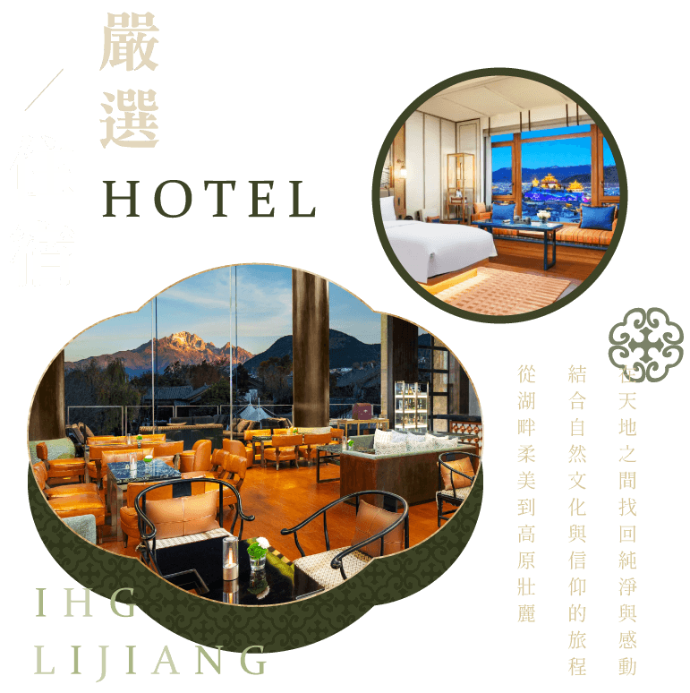 麗江和府洲際度假酒店坐落於世界文化遺產的五星級度假酒店。在麗江古城的靜謐氛圍中享受國際級服務。夜晚,酒店燈火與古城交相輝映;白天,庭院裡的茶香與雪山的倒影相伴。這裡既是探索麗江文化的起點,也是享受奢華度假的理想之地。