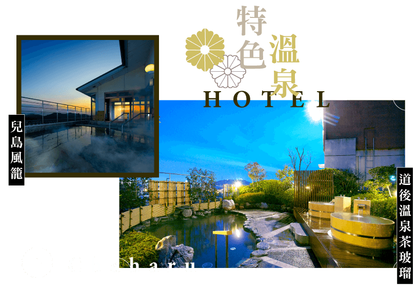 距離歷史悠久的道後溫泉只有步行約1分鐘。頂樓 的露天溫泉「星の湯」和「月の湯」為飯店最大的特色,視野非常的寬闊,可以將歷史悠久的古溫泉街盡收眼底,還能一面欣賞松山城優雅的姿態和飽覽松山市夜景一面享受著泡湯。泡完湯後可以來一趟浪漫的溫泉街巡禮。