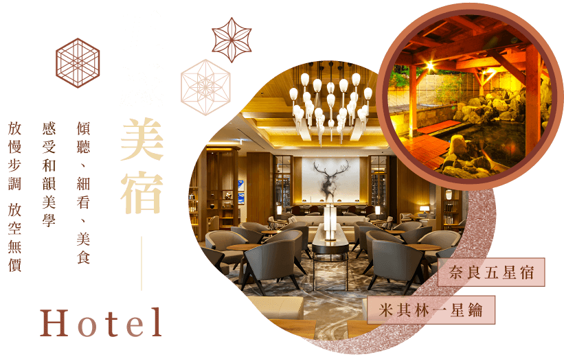 萬豪的旗艦飯店,米其林一星鑰,首家入駐日本的JW萬豪酒店,也是奈良罕有的國際豪華品牌酒店。酒店是由倫敦GA Group設計 ,於奈良風情民俗中汲取靈感,致敬奈良若草山燒山祭,以溫暖橘融合大地棕,營造出溫暖沉靜氛圍,帶領旅客尋覓寧靜心靈。