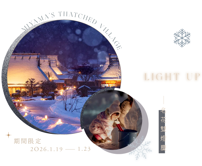 季節限定:北野天滿宮.梅飛雪舞 ~UNESCO:雪景金閣寺.水倒影 ~【點燈1】特別企劃.一年一度季節限定.美山點燈(2026/1/19-1/23):美山かやぶきの里「雪灯廊」.夢幻點燈.屋台小攤 ~宿在風景里.時旬主主廚會席美饌