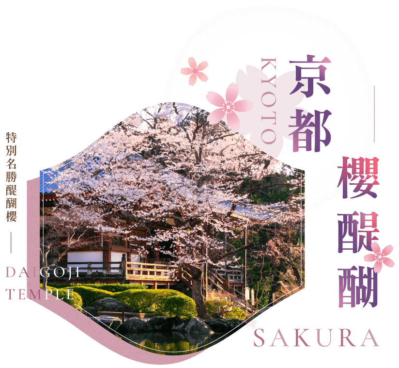 櫻花100選,京都櫻花首選,如京都只能選一處賞櫻花!那「醍醐寺」是大多數人的答案。醍醐寺風輕拂,櫻花如雪洩光,古寺鐘聲與花影交錯,心映花吹拂。