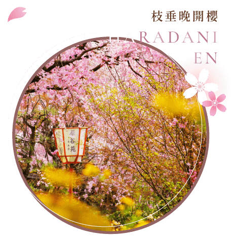 400多棵不同品種櫻花,如置身世外桃源,滿山粉嫩櫻花搭配五顏六色花兒色彩豐富繽紛,此園被封為「此生必看櫻勝地」。因位於住宅管制區內因素不容易到達,是晴日旅遊的最私房景點。