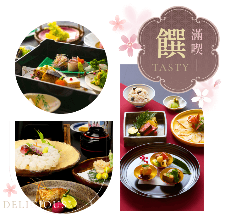 溫泉會席御膳:聽著庭園潺潺流水,春櫻、夏綠、楓紅、雪舞,京都風會席料理懷食禪學,一場五感美學之食藝,等著您用「心」來細細品宴。