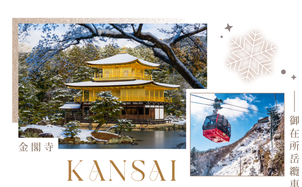 依時節擇2處參觀:【A. 世界文化遺產:雪景金閣寺.水倒影或B. 重磅回歸:清水寺.清水舞台或 C. 季節限定:北野天滿宮.梅飛雪舞】~大阪自遊購物趣:難波.心齋橋.梅田商圈 ~大阪夜未眠