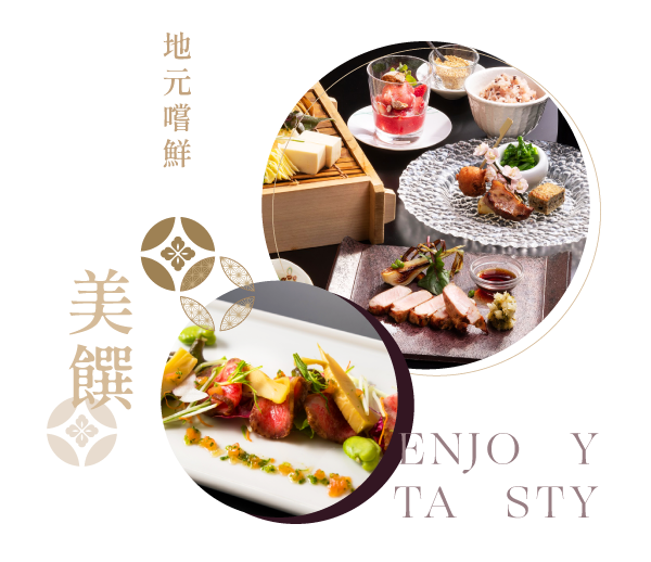 早餐: 飯店內享用早餐 午餐: 主廚精緻旬彩料理 晚餐: 著輕和服榻榻米享用會席御膳 或 主廚精緻料理套餐