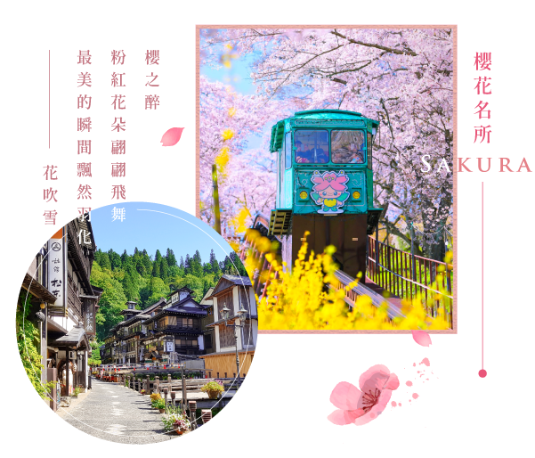 春限定!粉櫻蝶舞:【A. 櫻羽霞雲.二本松城 或 B. 櫻色滿山.花見山 或 C. 名庭園.淨樂園 或 D. 三名櫻.三春滝櫻】 ~宮城櫻名所:【A. 百選櫻花.船岡城址 或 B. 白石川提.一目千本櫻 或 C. 杜の湖畔公園】 ~仙台夜未眠