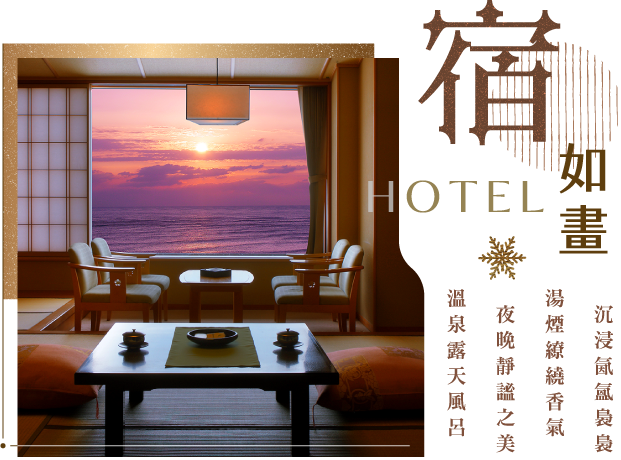 海上明月共潮生!聽著海浪聲音,舉杯邀明月對影成三人,在「游水亭」享受屬於自己時光吧。面對日本海一邊看著大海一邊泡著溫泉,也是旅遊的感動。