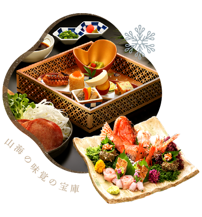 聽著風吹過山川草木聲音,看著窗外春櫻、夏綠、楓紅、雪舞;「款待的心」結合「和韻之美」,今晚,代表溫泉旅館的會席晚宴,就從第一品料理開始上演,邀請您親自細細品宴。