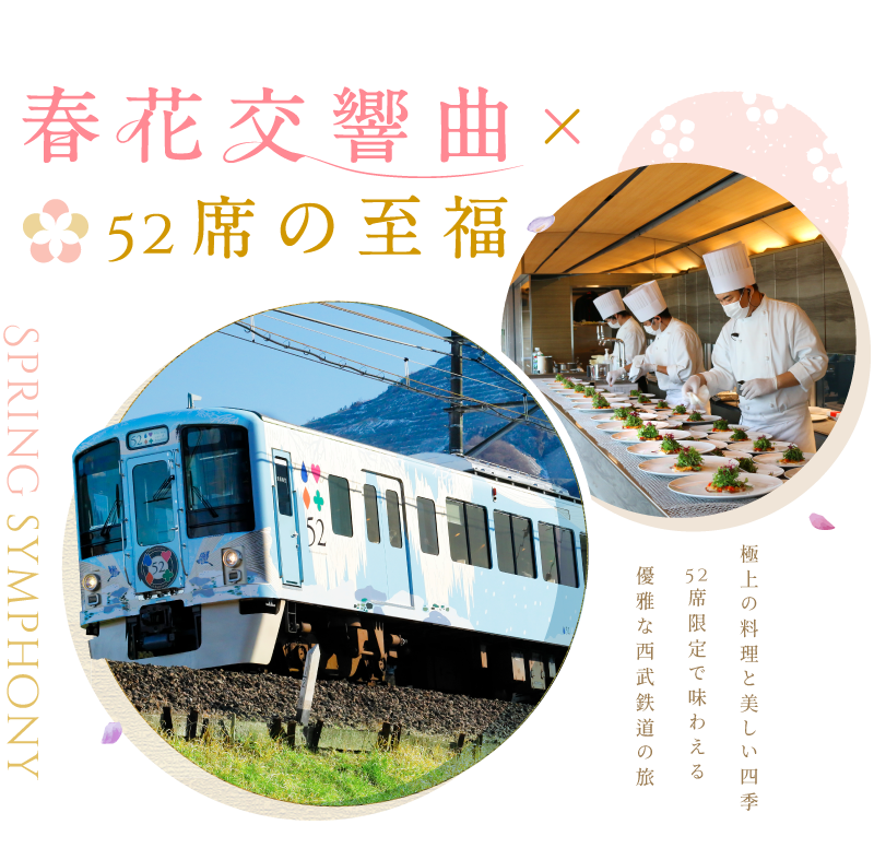 春暖花開的四月天,特別安排一次就欣賞最具特色的春花,有足利紫藤花、日立粉蝶花、秩父芝櫻、館林杜鵑;另外再預訂到熱門的52席至福餐車,給與貴賓視覺、味覺最佳饗宴。