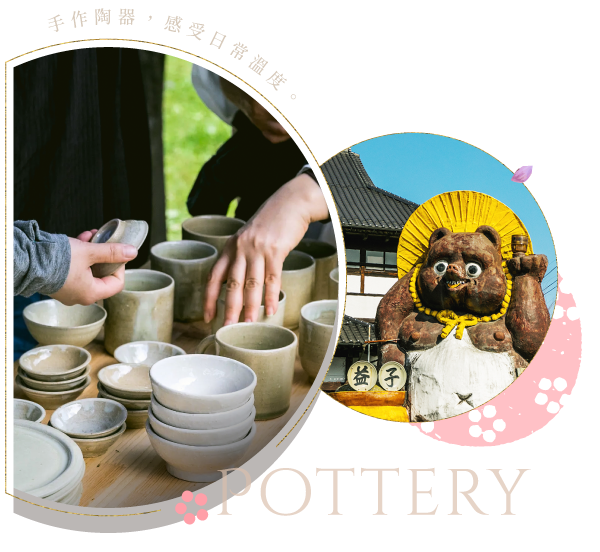 益子町的城内坂陶器街是益子燒文化的集中地,兩側排列陶器店、工作室與咖啡館 。途中可細賞各式手作益子燒,從日用餐瓷到現代藝術風作品皆有售。逛累了可以在窯元經營的咖啡館稍作休息,一邊品味咖啡、一邊感受土與火的質樸美。慢行探索,細嚐每家店的特色與益子燒的獨特風情。