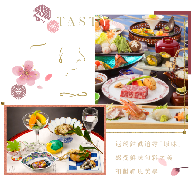 早餐: 飯店內享用早餐 午餐: 海鮮季節旬時料理 或 創意精緻料理 晚餐: 著輕和服於榻榻米享用會席