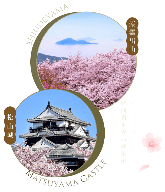 愛媛松山城(櫻)+二之丸庭園:全國12天守,最高海拔城堡;日本櫻花100選地,米其林星級景點。
