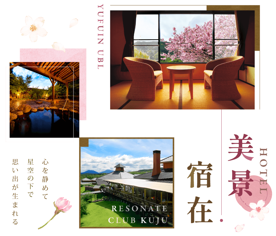 由布院 悠碧蘆.晴日旅遊邀請您!今晚,直接住在「風景」中。座落於由布岳山釐隱宿,來自金麟湖的風在此緩緩落腳,在窗邊為您演奏優雅樂章;聆聽鳥叫蟲鳴遠離塵囂,倘佯山川草木四季輪轉,沉浸氤氳裊裊溫泉風呂,「心」已在大自然慢板中沉醉。