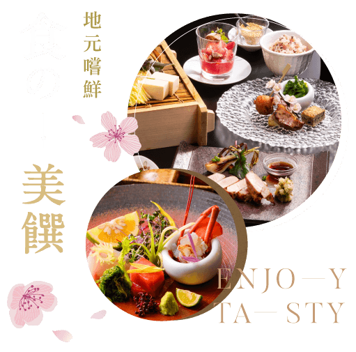 早餐: 飯店內享用早餐 午餐: 魚介料理 或 鄉土御膳 晚餐: 飯店內享用和洋創作料理 或 飯店內綜合百匯自慢料理
