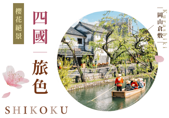 櫻花名景:100選櫻花千光寺、100選櫻花松山城、栗林公園、金刀比羅宮、滿濃公園、後樂園。