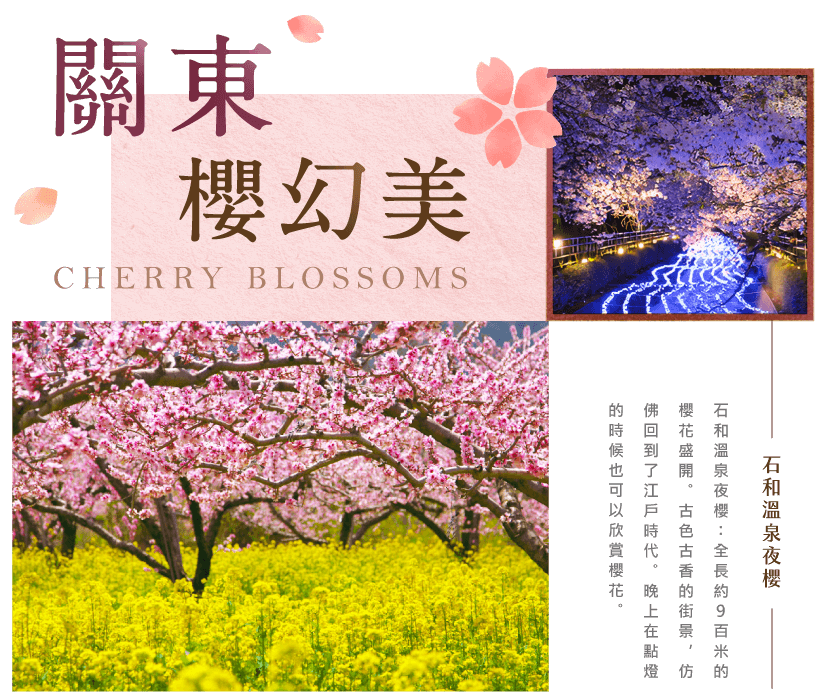 櫻花100選名所:大宮公園.一目千本櫻 ~春之琦玉:【A. 角川武藏野博物館 或B. 多摩川櫻堤.ふっさ櫻まつり 或 C. 滝山公園.滝山城跡櫻まつり】~笛吹春の祭.石和溫泉街櫻花散策「期間限定:石和夜櫻 LIGHT UP」
