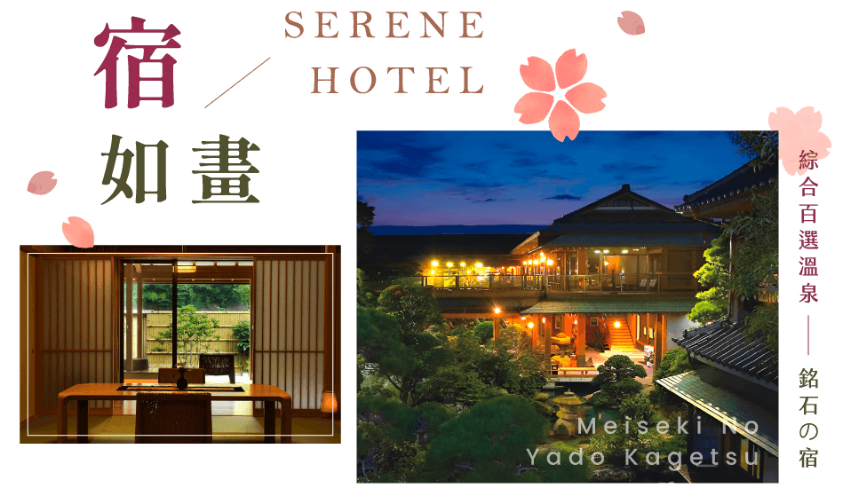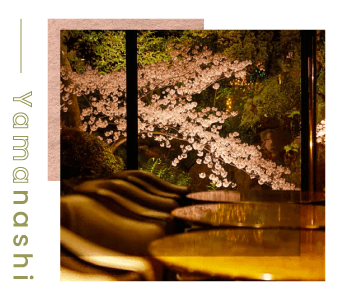 位於山梨縣石和溫泉鄉。在奢華的木造建築裡,欣賞微風輕輕拂過的樹林,聆聽晶瑩剔透的寧靜水聲;佔地5000坪的庭園內,更有從全日本收集的銘石、巨石等,現代造園技術建築的日本庭園,隨處都可感受日本傳統美學,沉浸大自然四季旬彩撫慰您的心。