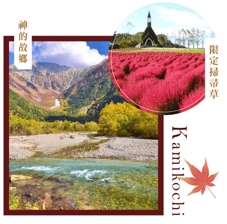 『紅葉』絕景:米其林綠色指南3星:上高地”一”日靜謐小Hiking:依腳程.梓川.大正池.河童橋.明神池.明神橋.川谷林間染秋意.山嵐飄渺佈仙境 ~森林山嵐:約15:00左右離開上高地 ~五感雅宿.温泉風呂星空呢喃