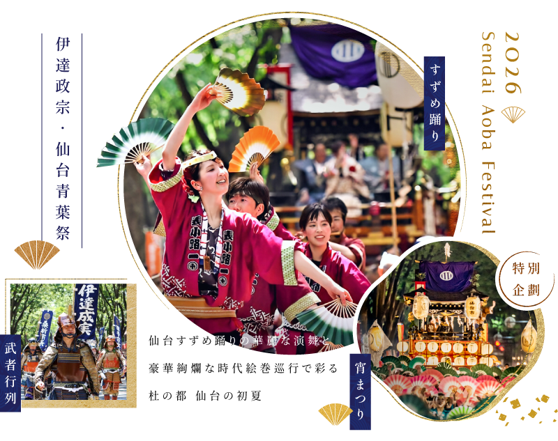 可追溯到江戶時代的「仙台祭」,為祈求仙台藩城下繁榮而舉行神事;1985年為紀念政宗公逝世350年,重新復興將傳統歷史與城市文化連結,並命名為「仙台・青葉まつり」。