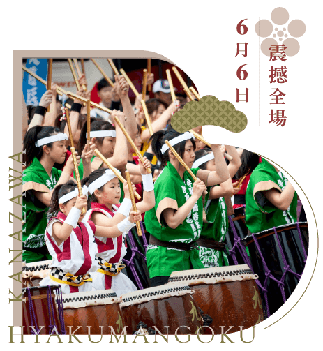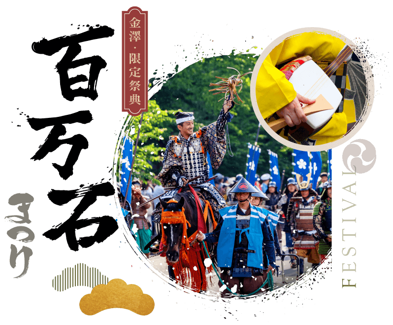 每年6月第一個周末,市民感念前田利家公,舉辨石川縣(加賀藩)最大的祭典活動金澤「百萬石祭」,重現金澤城下町繁榮,整座城市光彩奪目、歡樂聲震九天。三天的活動,於週六下午的「百萬石行列」將祭典帶到最高潮,長達3.1 公里2000名表演者行列舞動,熱鬧非凡。