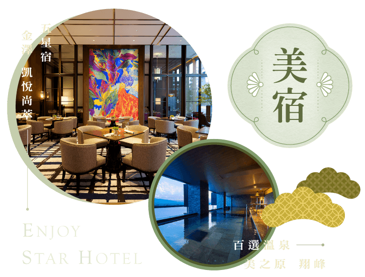 早餐: 飯店內享用早餐 午餐: 主廚創意料理 或 和韻料理 晚餐: 金澤夜未眠.敬請自理