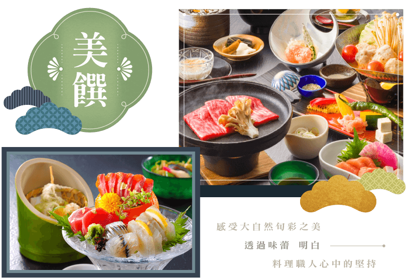 溫泉會席料理:靜聽庭園流水,眼前春櫻夏綠、秋楓冬雪,百選溫泉旅館「和韻」以禪學之美,用心烹調極致美味與寧靜。