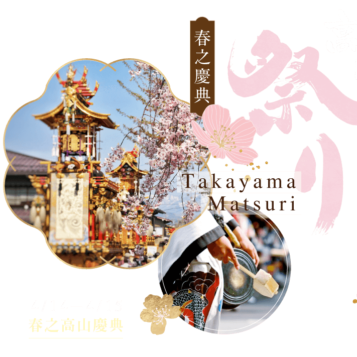 高山祭為三大曳山祭、三大美祭,與秩父夜祭、京都祇園祭合稱三大美祭。分為春、秋兩季進行,春季為日枝神社主辦的春之山王祭,最大的特色就是華麗的人力屋台車遊街景象。屋台各有名字,春之山王祭日枝神社主辦神樂台、三番叟、麒麟台…等。