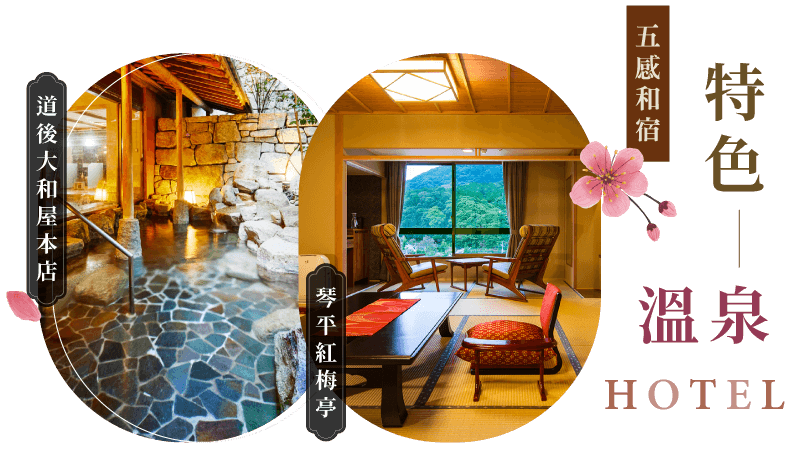 琴平溫泉紅梅亭:『綜合百選溫泉』認證。步行至金刀比羅宮或與溫泉飯店放空都自由。