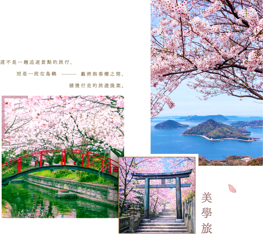 紫雲出山賞櫻.天空與海交會的櫻色秘境 | 當千株櫻花盛放於山巔,遠方的瀨戶內群島漂浮在藍海之中。櫻花如霞、雲海翻湧,天地在此合為一色。