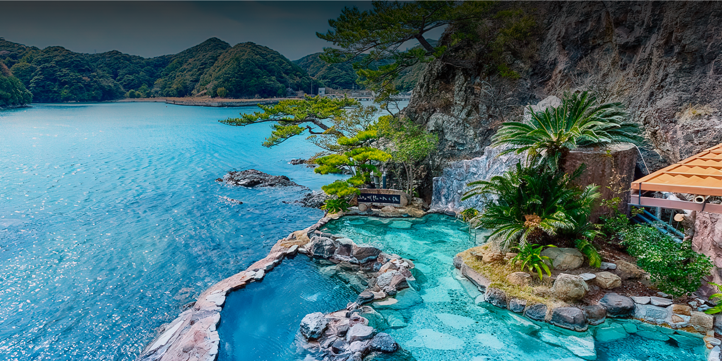 2019年4月19日、高級日式溫泉旅館碧島之宿熊野別邸中之島重新開張!熊野別邸中之島是獨處孤島,所有客房面向大海的特色日式溫泉旅館。熊野別邸中之島坐落在南紀勝浦溫泉的孤島上,四周大海環抱,景致迷人。熊野別邸中之島由新館「凪之抄」與「潮聞亭」等2棟樓組成,總共擁有44間高級榻榻米和室客房。中之島上有6處泉眼,熊野別邸中之島的溫泉浴使用100%天然溫泉為住店客人提供獨一無二的海邊露天溫泉大浴池等多種充實的溫泉入浴設施。由