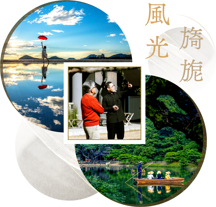 中西珍松園至今已傳承五代,是高松盆景最具代表性的名園。這裡最著名的紀錄,是昭和天皇曾兩度親自蒞臨視訪,對園內的松柏盆景給予極高評價。園內收藏多棵百年以上的國寶級盆景,展現了日本極致的修剪美學。行程中將由名門後代親自帶路,以在地人的視角分享這片土地與藝術季之間的連結。除了參觀,您也能在職人指導下體驗盆景修剪,近距離感受傳承百年的工藝細節。這是一場回歸本質的文化對話,讓您看見名園背後真實的執著與幽默。