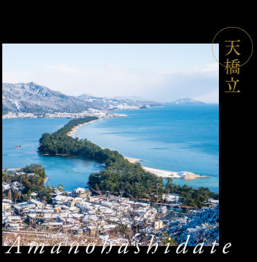 天橋立:日本三景之一,長約4公里的沙洲,覆蓋超過8,000棵松樹,美景如天上橋樑,風光秀麗,冬季時一片雪白特別吸睛。