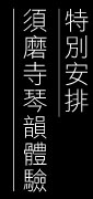 須磨寺琴韻體驗:須磨寺歷史悠久逾千載,珍藏日本最古一絃琴「須磨琴」。此行程由晴日獨家安排,寺中僧侶帶領導覽珍稀文物與寺廟內部,並親賞須磨琴現場演奏及體驗其幽雅韻味。