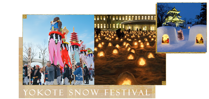 橫手雪祭.浪漫燈火雪屋群: 萬盞燈火在雪白天地間悄然點亮。雪屋「かまくら」沿河靜立,燭光映照人影與笑語,彷彿走進專屬於冬夜的浪漫童話,溫柔而純粹。