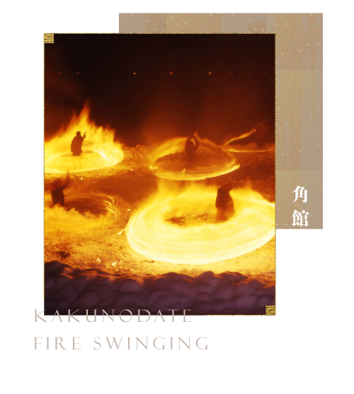 角館火振雪洞: 白雪火輪的奇幻 雪中舞動絢爛火輪的奇幻祭典,一個接一個點燃的火輪,祈求全家除厄消災及平安健康。
