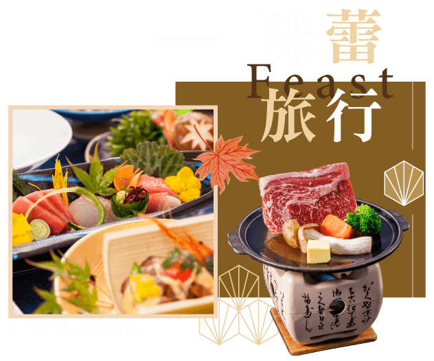 早餐: 飯店內享用早餐 午餐: 時旬季節御膳 或 主廚季節洋食套餐 晚餐: 飯店內主廚懷石百匯料理