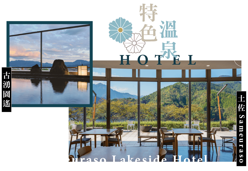 位於土佐鎮是四國的中部。也被稱為“四國水瓶”,日本西部最大水壩。一個水源豐富、森林豐富的城鎮,周圍環繞著波雨浦水壩等美麗的自然風光。Sameuraso Lakeside Hotel位於早明浦湖岸邊。每個房間的景色都在時刻變化,可以欣賞到令人自豪的湖景。