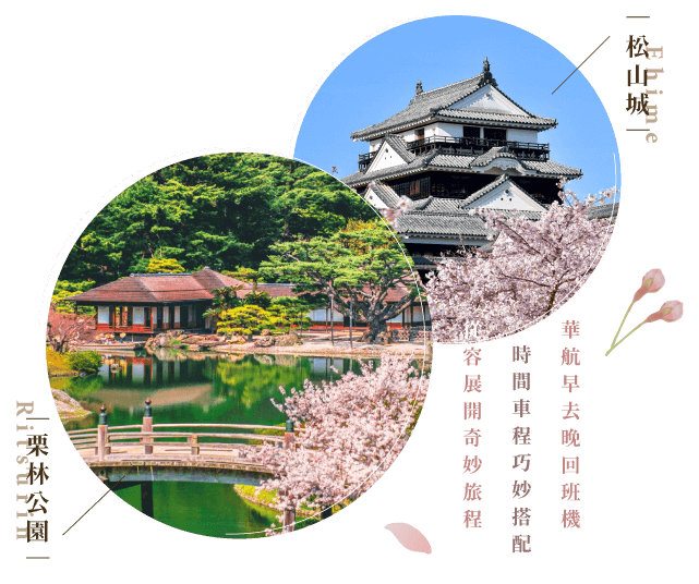 日本.高松空港 ~日本庭園顛峰之作.栗林公園:米其林3星評鑑+ 日本文化財(櫻3月下旬4月上旬)~香川百景:【A. 花限定.高松城跡玉藻公園(櫻3月下旬4月上旬)或 B. 屋島展望台.眺望瀨戶內海】~琴平.綜合百選溫泉吟撰宿「連泊二晚」