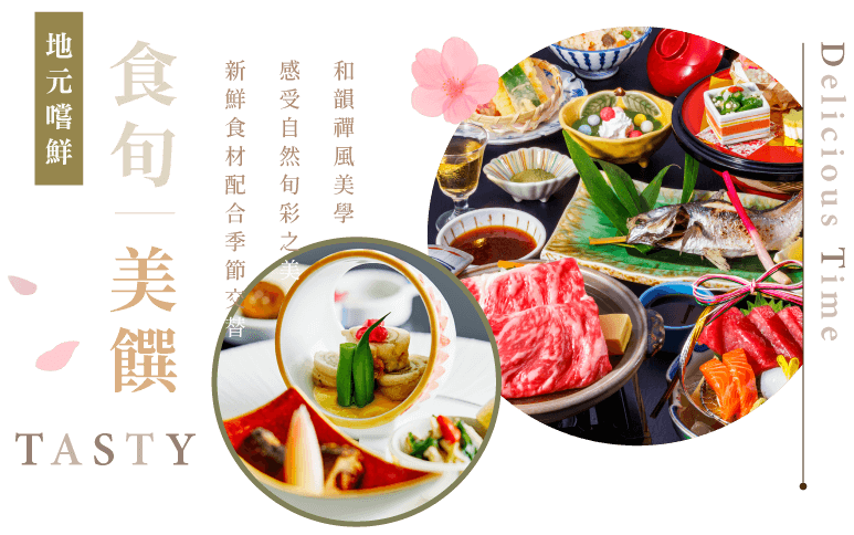 溫泉會席晚宴:一場五感之食藝,等著您用「心」來細細品宴。「款待的心」結合大自然四季旬彩,「和」韻之美就從第一品料理開始上演。